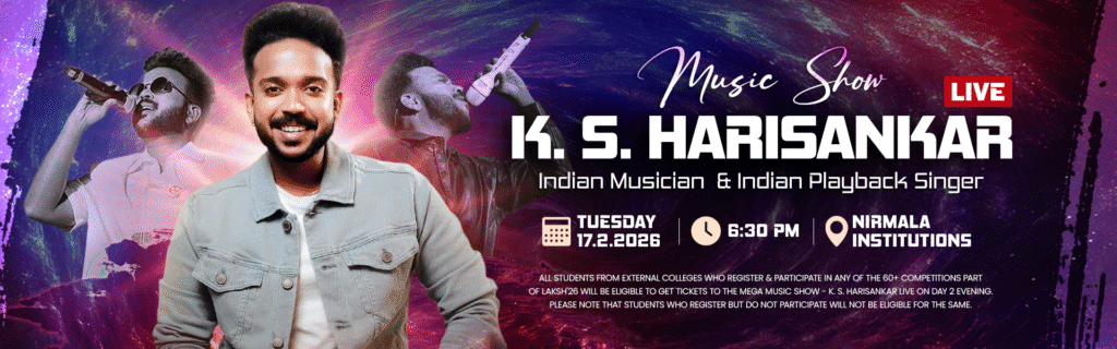 Please note that the general ticket permits access to all areas of Laksh during both day but does not include entry for the mega music show on Day2 evening. The music show entry is restricted to participants of the competitions in Laksh from other colleges, Nirmalites, and Nirmala alumni. Alumni should ask a teacher currently working at Nirmala to submit a recommendation letter to laksh@nirmalacollege.edu.in before purchasing tickets to the music show. All event admission rights reserved.